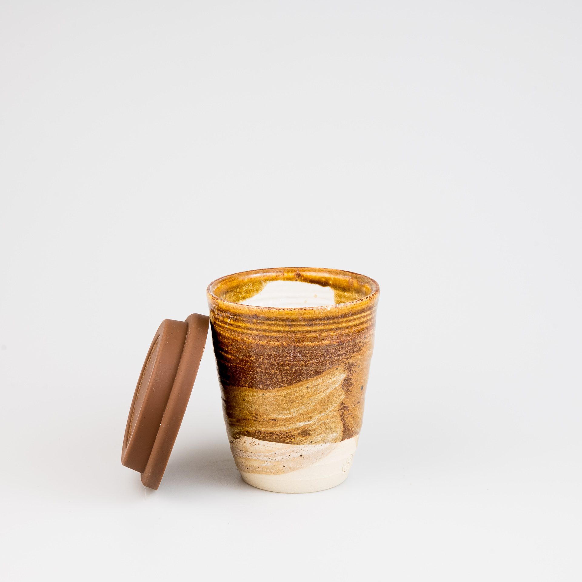Zero waste – zabierz swój własny kubek do ulubionej kawiarni i chroń środowisko. Idź z nim na spacer lub umieść w uchwycie samochodowym. Silikonowa pokrywka z otworem do picia, idealnie pasuje do krawędzi kubka. Kubek toczony ręcznie na kole garncarskim, szkliwiony.